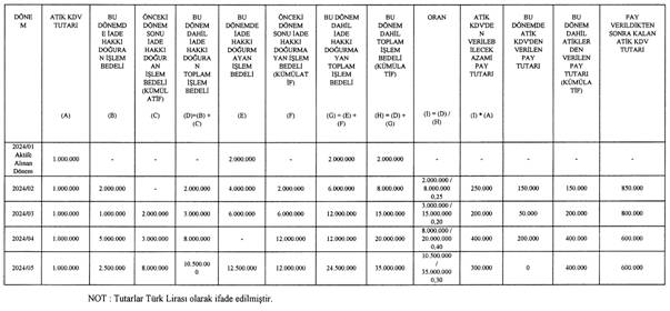 - İadesi talep edilen KDV hesaplama tablosu